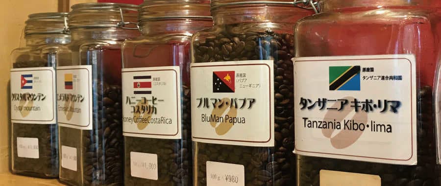 店頭には厳選した珈琲豆を常時数十種類ご用意。豆にはそれぞれ個性がありますので、ぜひ飲み比べてお気に入りを見つけてみてください。
